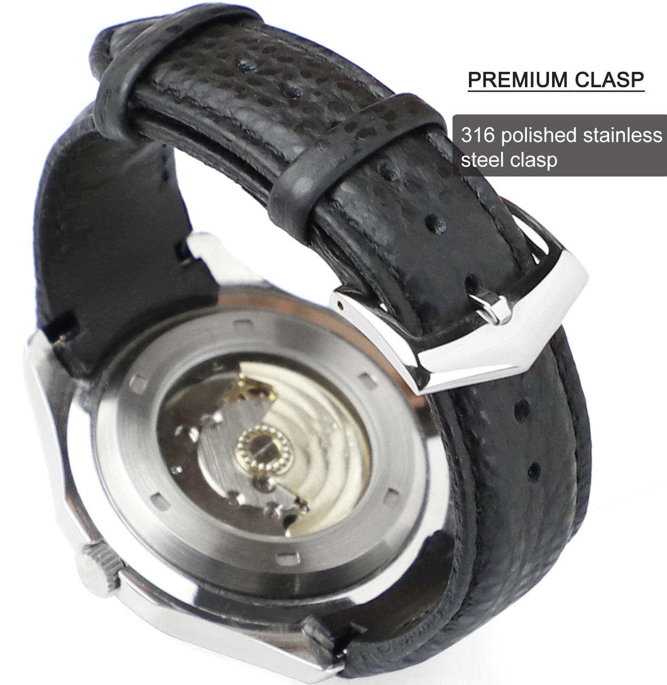 2.PERFECT CASE CONNECTION:The unique design utilizes an ABS plastic insert to seamlessly connect to the case. The curved end ensures a perfectly tight fit to the watch with zero jarring.Seamlessly hugging the case and lugs.